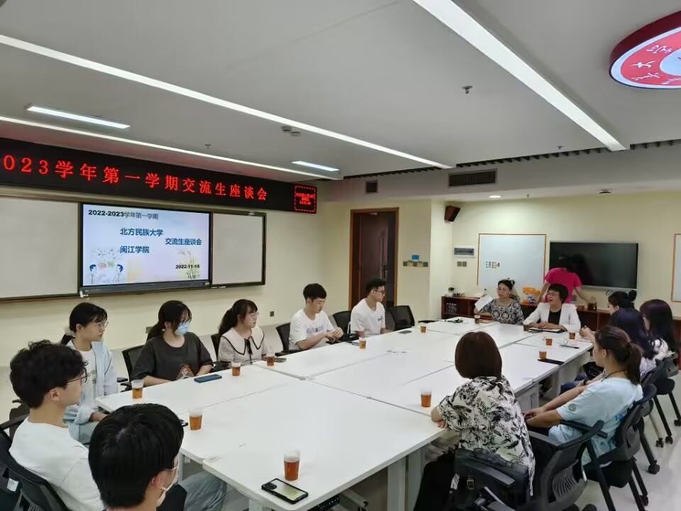 11月18日下午,教务处在尚大楼1012举办了北方民族大学、闽江学院交流生座谈会,北方民族大学的带队老师孟庆霞、10名来自北方民族大学和5名来自闽江学院的交流生参加了座谈会,座谈会由教务处副处长郑捷琴主持。