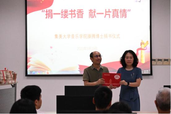 近日,图书馆举行音乐学院副院长滕腾捐赠图书仪式。仪式由图书馆馆长戴乐阳主持,副馆长李晞及相关人员参加仪式。