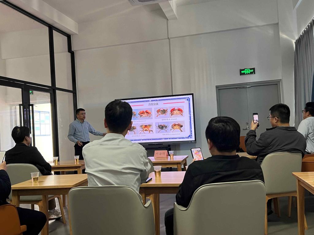 首期主讲人叶海辉教授以目前青蟹产业的发展现状为背景,引出了目前产业中尚待探讨的问题,着重介绍了福建省特有的青蟹品牌。与会专家、青年学者围绕“养殖模式”“饲料优化”“遗传育种”三大问题展开研讨交流,各抒己见。