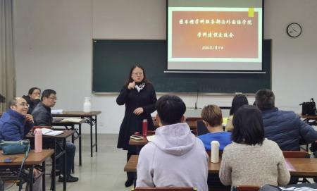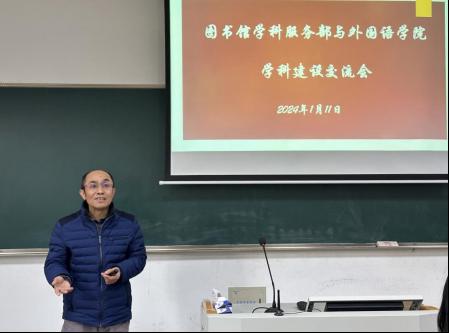 1月11日下午,图书馆馆长、博士生导师戴乐阳教授率图书馆学科服务部一行到访外国语学院进行学科建设交流,院长张海燕主持会议,学院科研骨干教师到会。