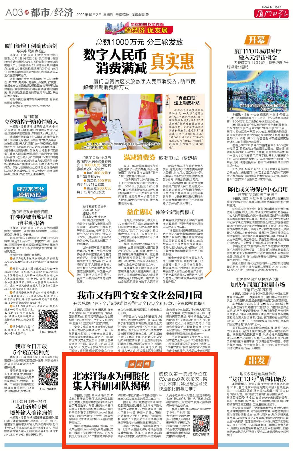 《厦门日报》链接:北冰洋海水为何酸化 集大科研团队揭秘_厦门日报电子报[厦门日报]_厦门网 (xmnn.cn)