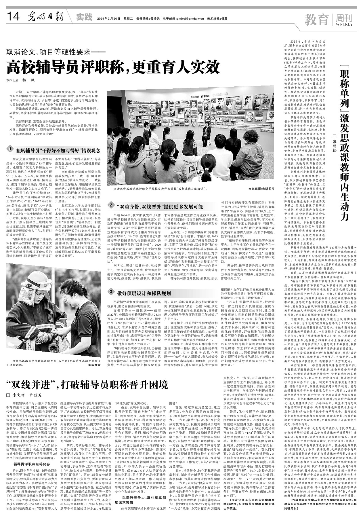职称单列是落实立德树人根本任务的客观需要。思政课是高校对青年学生进行思想政治教育的主渠道、主阵地,是加强和改进高校思想政治工作的关键环节。作为思政课教学活动的组织者和实践者,思政课教师肩负培养时代新人的重要使命,是为学生健康成长指导、引路的主力军。思政课教师职称单列对于保障思政课核心课程地位,促进思政课教师更好履行责任使命具有积极作用。