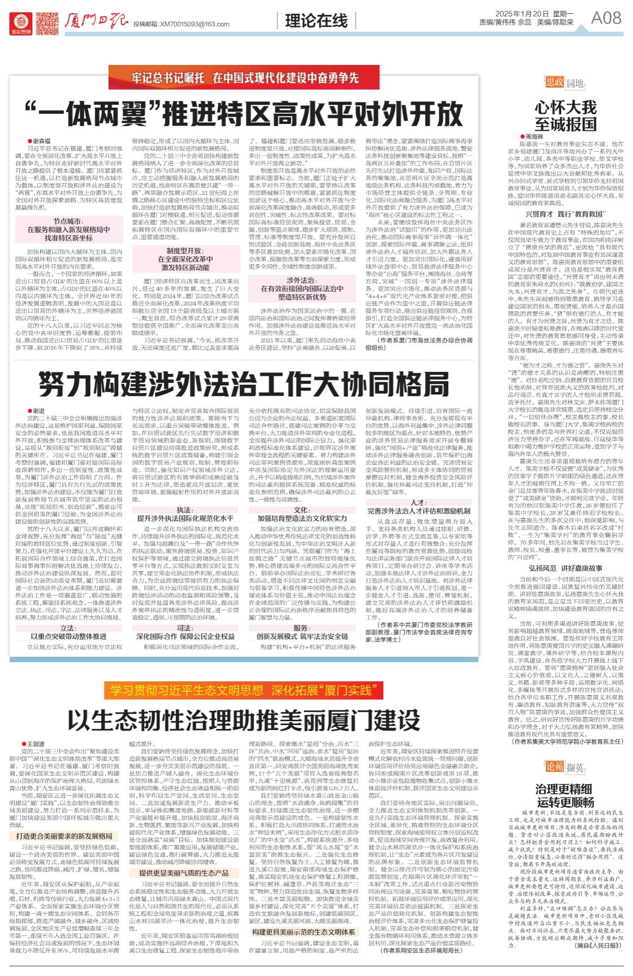 【厦门日报】心怀大我 至诚报国